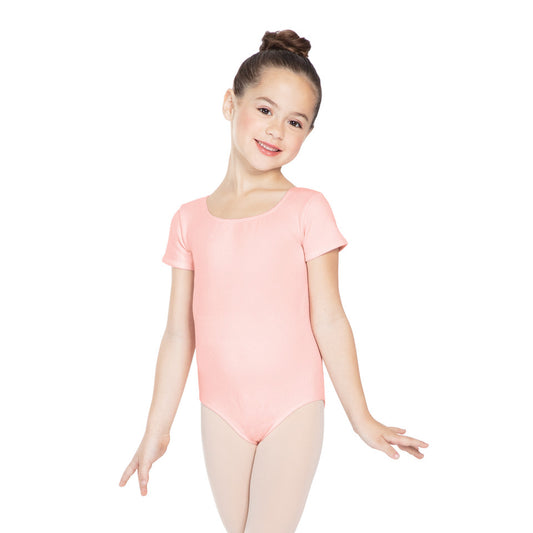 - Short sleeved pink, lilac or marine blue leotard, with pull-on chiffon pull skirt in matching color