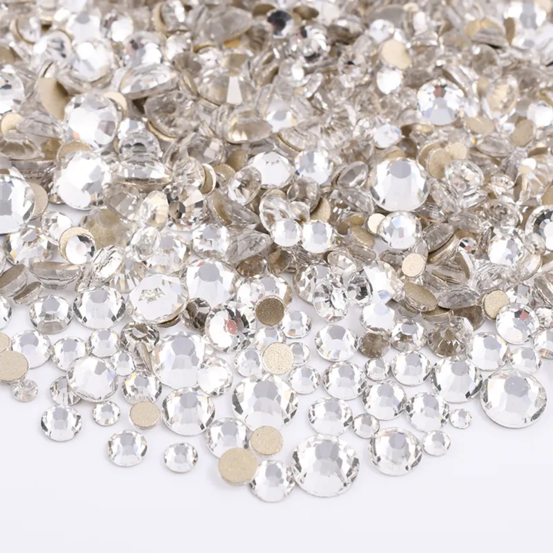 Packages come with (10 gross) 1440 flat back, glue on rhinestones.