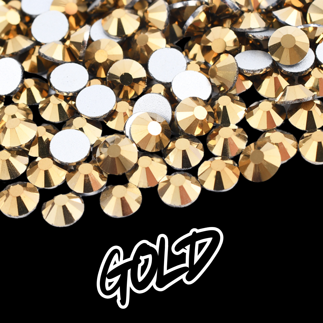 Packages come with (10 gross) 1440 flat back, glue on rhinestones.
