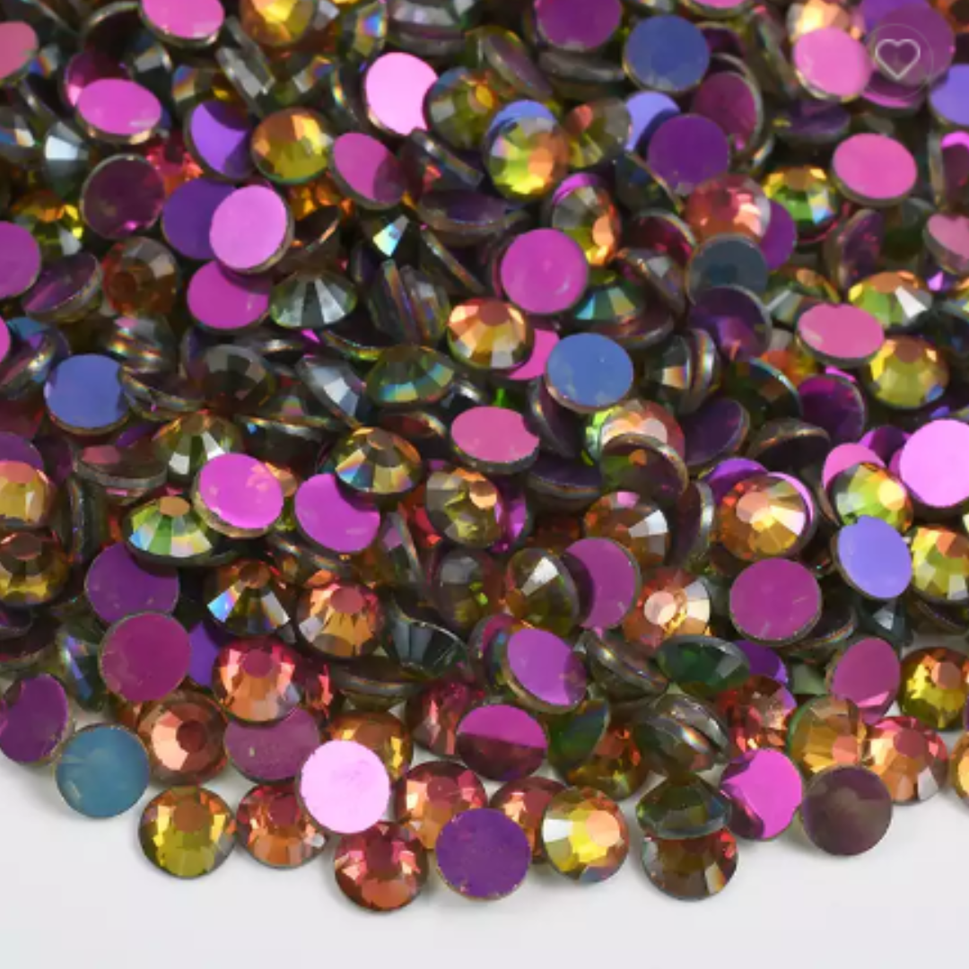 Packages come with (10 gross) 1440 flat back, glue on rhinestones.