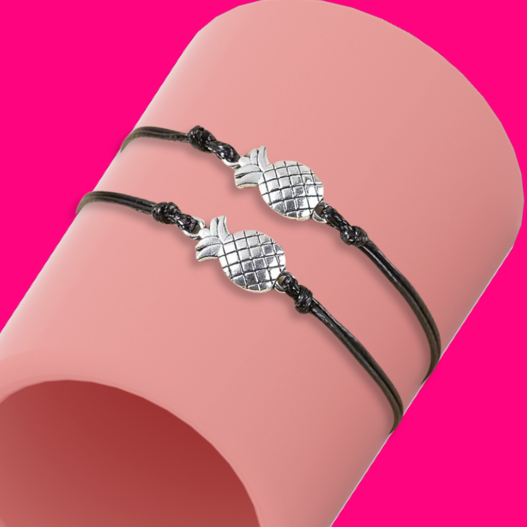 Need some tropical vibes in your life? Look no further than this 2 piece set of handmade woven bracelets with an adorable alloy pineapple pendant. A perfect gift for showing off your friendship with your BFF!