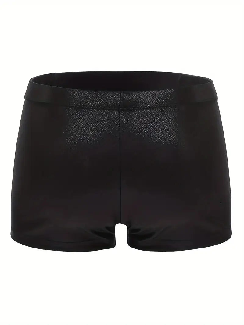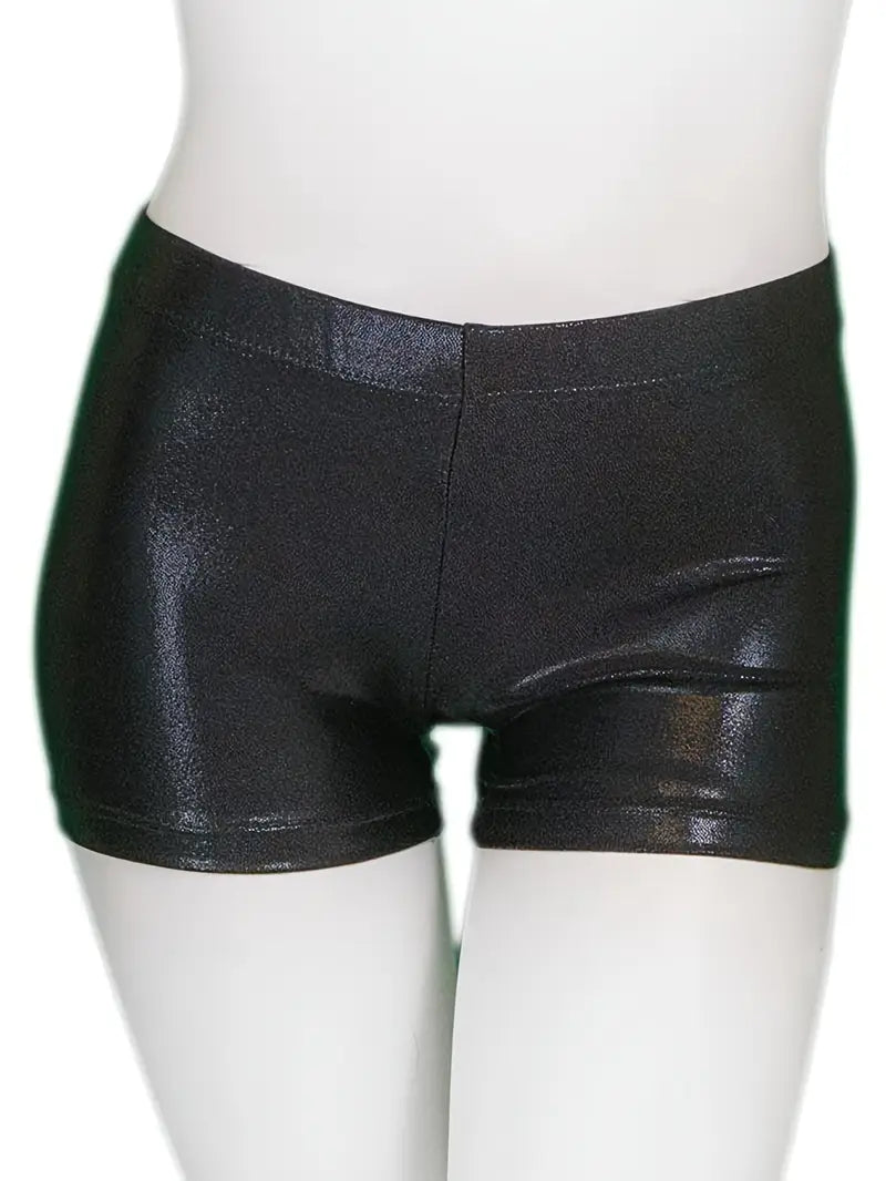 These Solid Black Metallic Hot Shorts bring fierce sparkle and undeniable style to every move. Their stretchy, comfortable fit keeps up with high-energy dance, gymnastics, or fun moments. These shorts combine bold metallic shine with flexibility so young athletes can perform and play without limits. Embrace movement with confidence and a shimmer that demands attention.