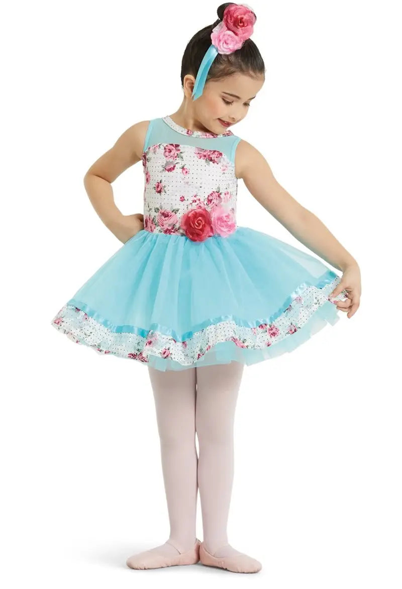 - Attached tutu is made of tricot with satin and floral ribbon detailing on the top skirt